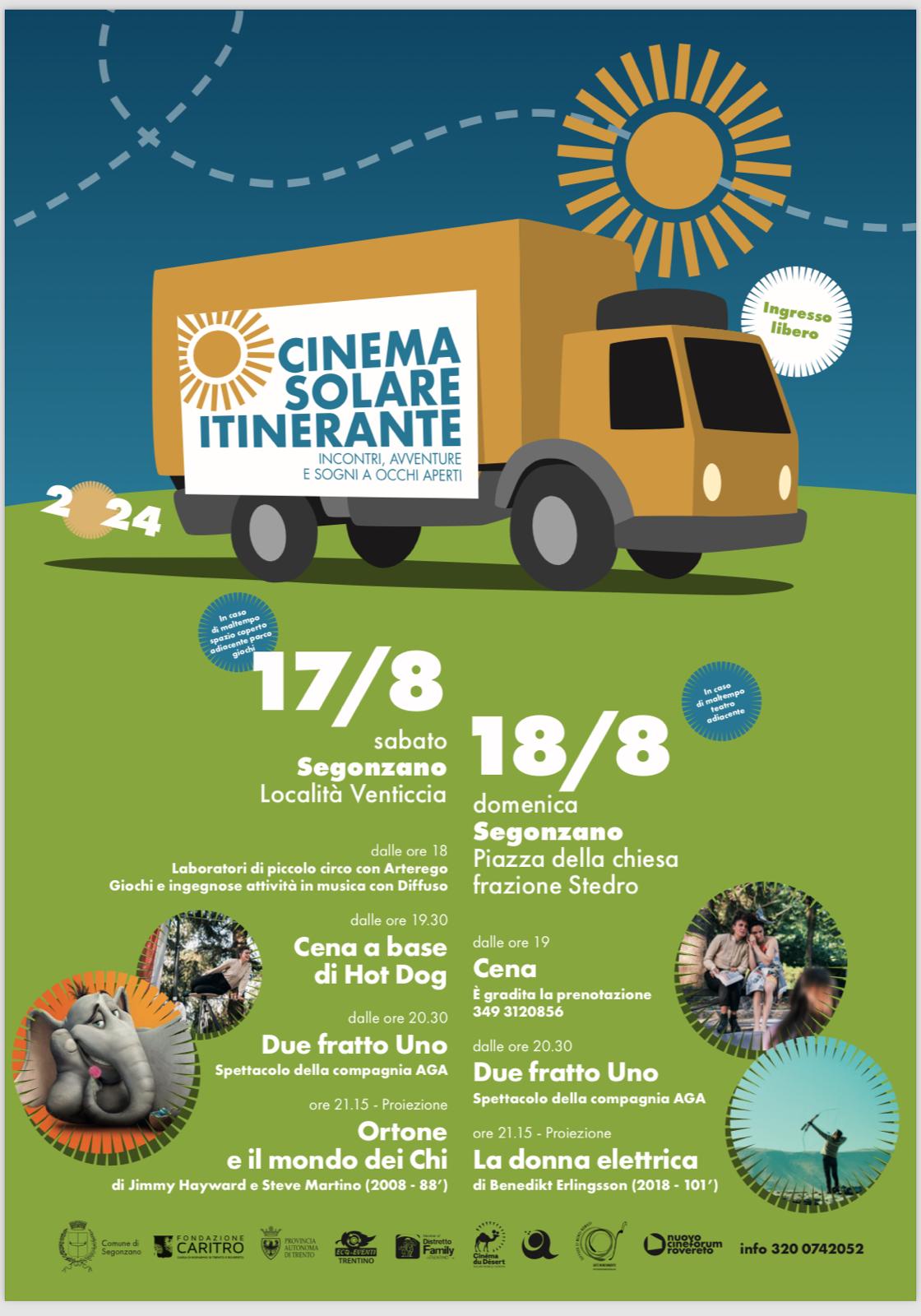 Il progetto Cinema Solare Itinerante, nato in Trentino nell'estate del 2016, mira a riproporre in tutta la sua forza la proiezione cinematografica come occasione per uscire dalle proprie abitudini - e dalle proprie abitazioni - per condividere un racconto, un'emozione, una storia un momento assieme.