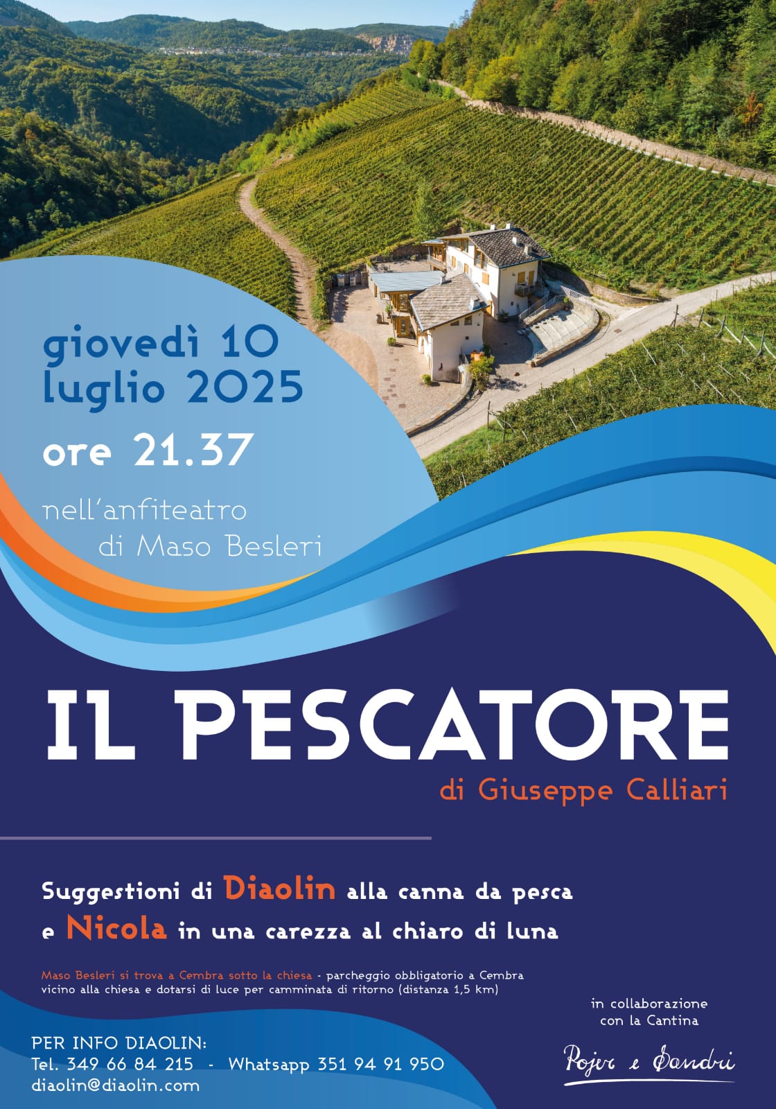 C'era una volta il cantastorie, che girava di paese in paese raccontando storie. Uno spettacolo di e con Giuseppe Calliari e le suggestioni di Diaolin e l'accompagnamento musicale di Nicola. Giovedì 10 luglio 2025 alle ore 21:37 presso l'anfiteatro di Maso Besleri (Cembra).