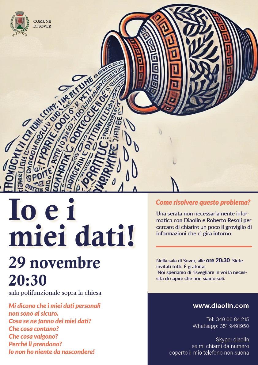 L'Amministrazione comunale di Sover organizza il giorno 29/11/2024 alle ore 20:30 presso la sala polifunzionale di Sover una serata, non necessariamente informatica, per cercare di chiarire un un poco il groviglio di informazioni che ci gira intorno.