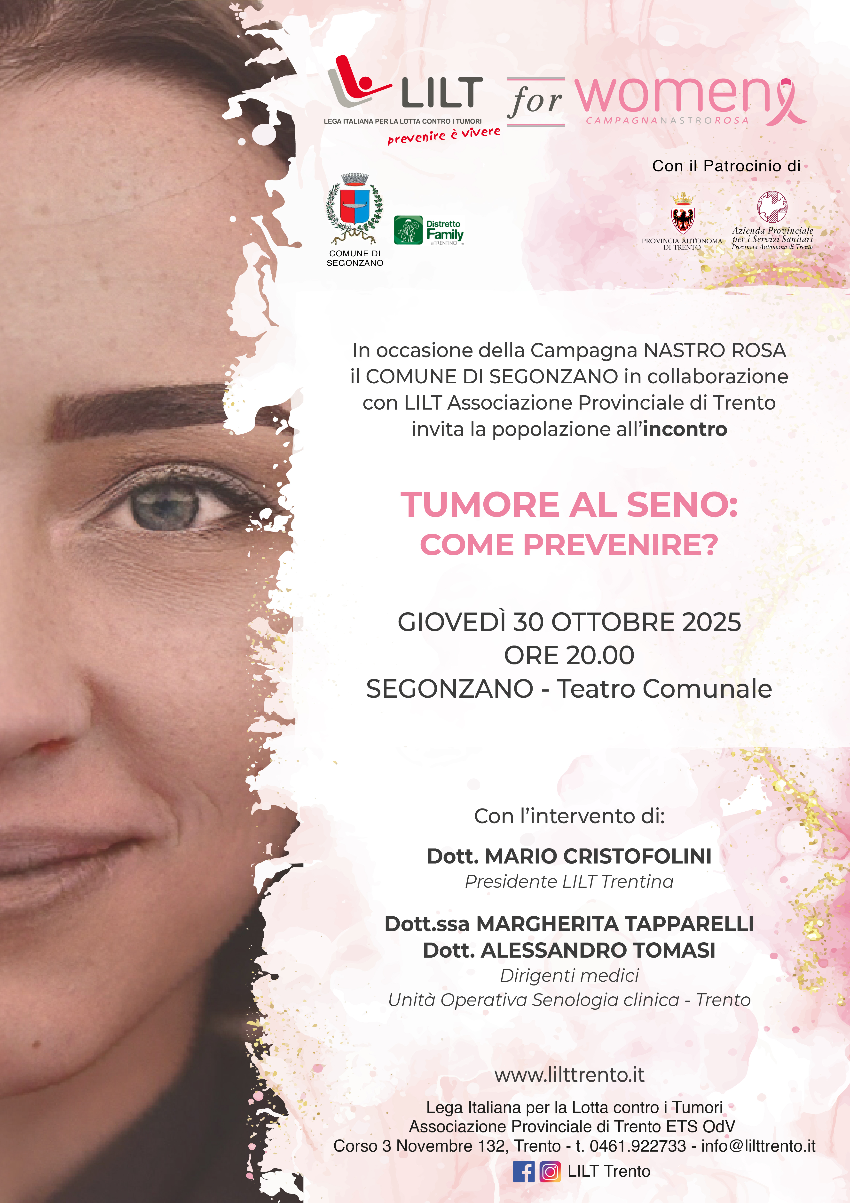 Con l'intervento di: dott. Mario Cristofolini, Presidente LILT Trentino, dott.ssa Margherita Tapparelli e dott. Alessandro Tomasi, Dirigenti medici dell'Unità Operativa Senologia clinica di Trento